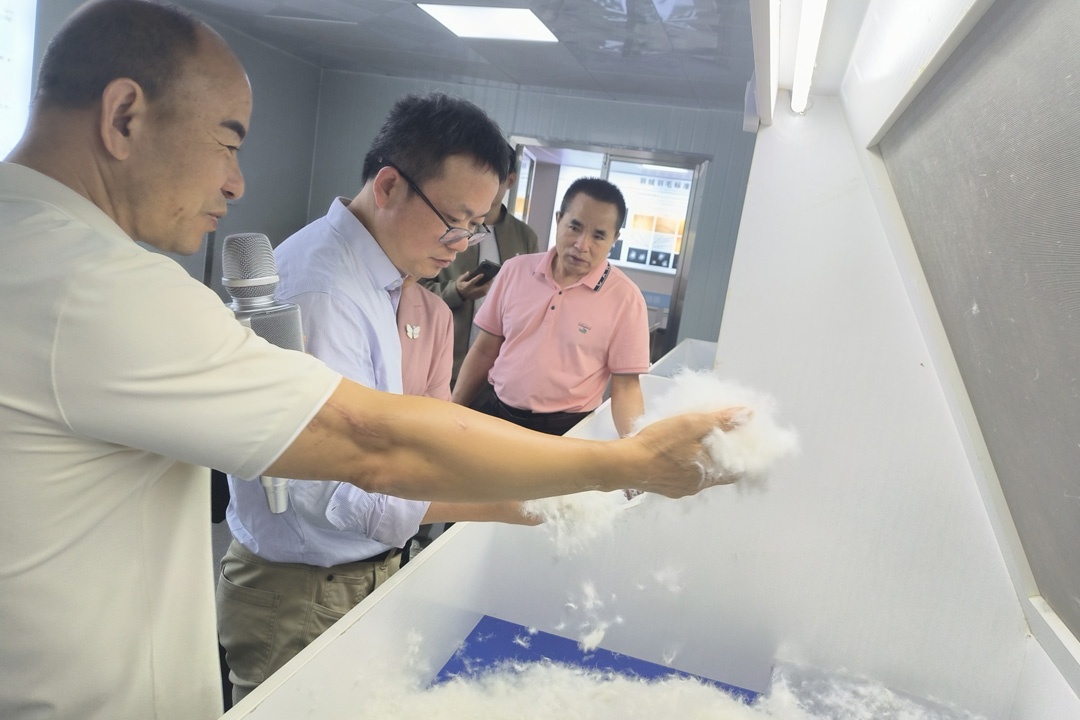 調研團一(yī)行(xíng)首先參觀了(le)公司獨具特色的(de)羽絨粉塵檢測儀,展示了∏$≈ (le)公司在羽絨生(shēng)産過程中對(duì)質量管理(lǐ)的(de)嚴格把控σ↓。同時(shí)調研團成員(yuán)親身(shēn)觸摸、體(tǐ)驗了(le)公司∑₩₩♣高(gāo)蓬松羽絨的(de)質量,進一(yī)步​∑&‌了(le)解了(le)羽絨産業(yè)的(de)生(shēng)産流程與技(jì)術(shù)β→ 标準。